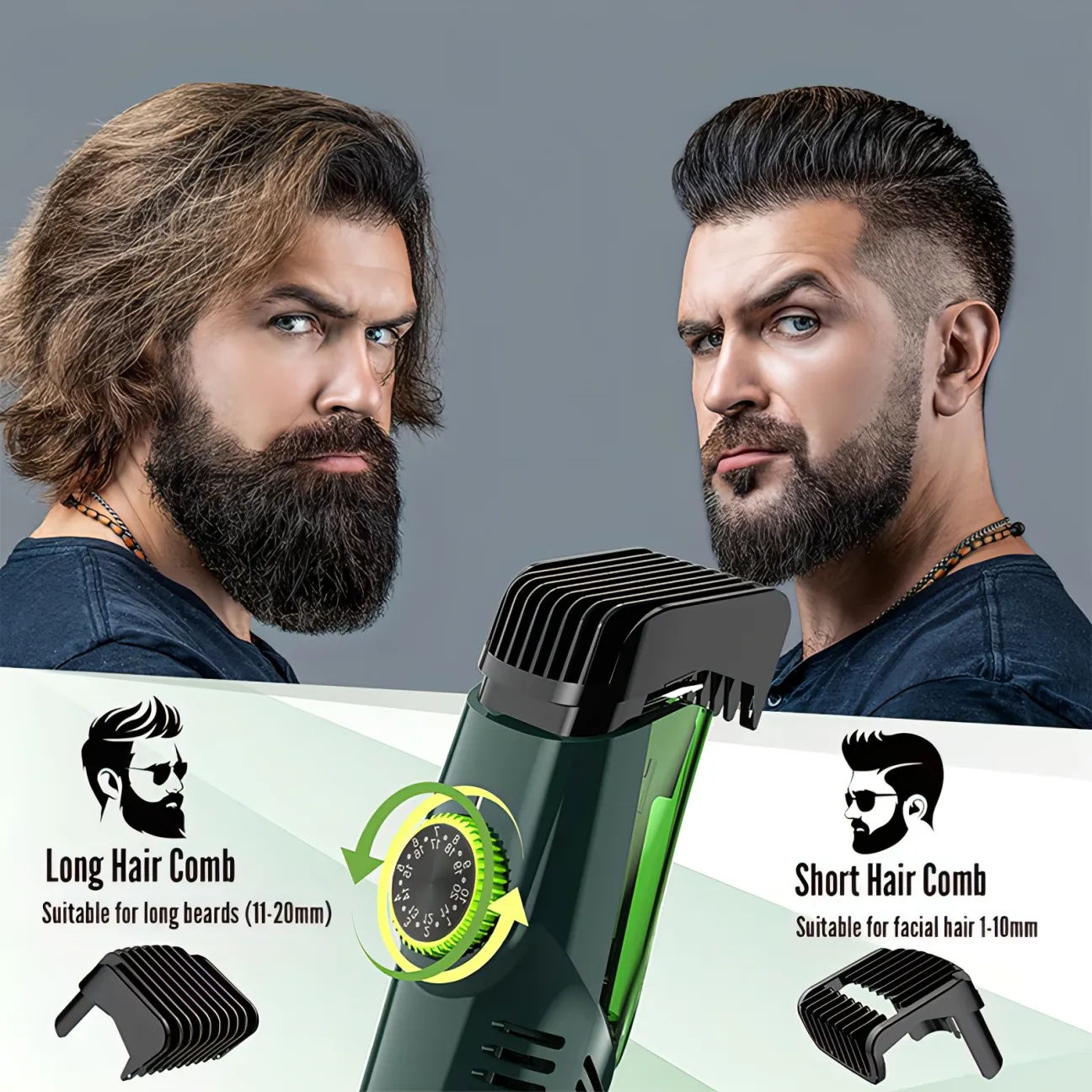 Comes with multiple adjustable limit combs, suitable for trimming beards of various lengths, ensuring precise control for achieving the desired look effortlessly.