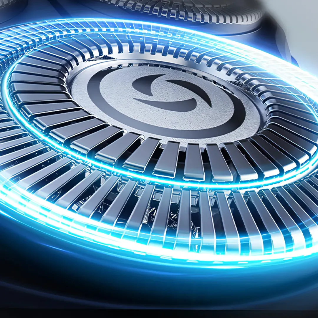 Features double-track cut blades that cover a larger shaving area, enhancing efficiency. The double-track design ensures each stroke cuts more hair cleanly and quickly.