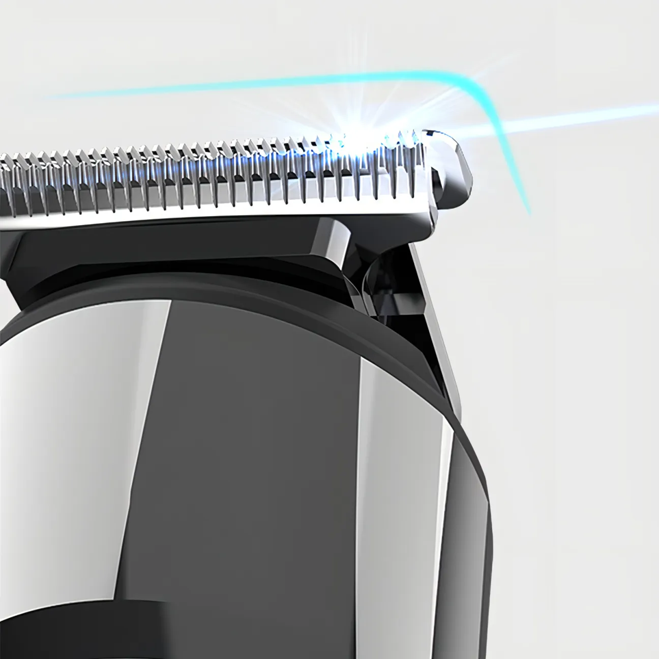 The blade features an R-angle design that fits closely to the skin, ensuring a safe and comfortable trimming experience without cutting or irritating the skin.