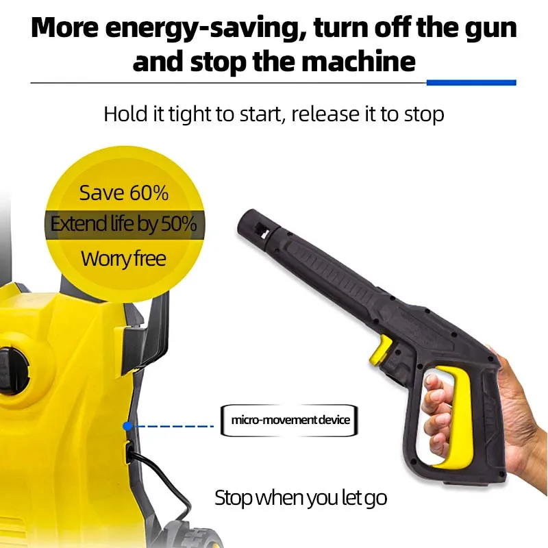 HyPress pressure washing machine is engineered with a robust waterproof design, ensuring reliable performance even in the most demanding environments. Whether tackling outdoor projects or indoor cleaning tasks, HyPress is built to withstand exposure to water without compromising efficiency or safety. Thus, it extends the lifespan of the equipment.