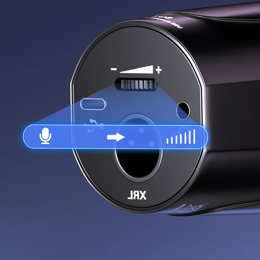 Knob-style volume adjustment for easy control, allowing seamless volume changes without the need to raise your voice, making recording a breeze.