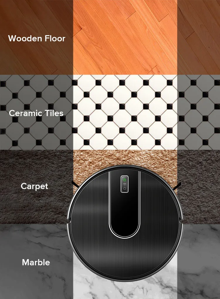 The shockproof resilient wheels allow the robot to climb across the thresholds with height less than 1.5cm.
