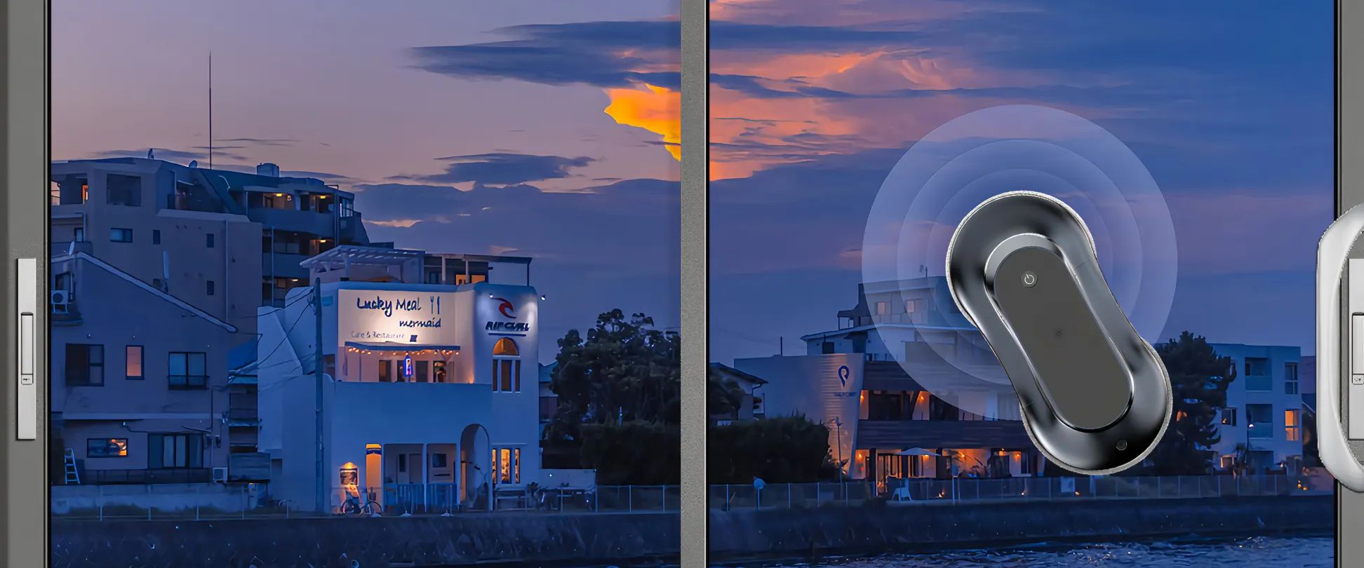 The sleek slim design allows the device to clean effectively in the approximately 10-centimeter gap between safety windows and glass windows, making it suitable for various types of windows and environments.